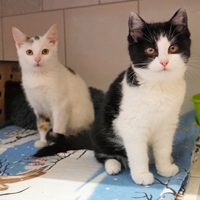 Die beideni Jungkatzen wurden wild geboren und suchten Schutz auf dem Grundstück einer katzenlieben Familie. Dort begann man, die Mutterkatze und ihre Kleinen mehrere Wochen lang zu füttern und zu versorgen. Schnell war jedoch klar, dass die Kitten in unsere Obhut übernommen werden sollten – und dass die Mutterkatze dringend kastriert werden musste. Beides ist inzwischen erfolgt, und die Geschwister Yuri& Yassi befinden sich nun bei uns im Tierasyl. Beidei sind noch sehr scheu und benötigen viel Geduld, Fürsorge und Zuwendung, um zu verstehen, dass wir Zweibeiner es gut mit ihnen meinen. Für die Vermittlung wünschen wir uns katzenerfahrene Menschen, idealerweise mit einem bereits vorhandenen, zahmen Artgenossen. Ein souveräner Katzenfreund kann den schüchternen Rabauken die Eingewöhnung enorm erleichtern. |