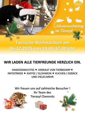 | +++ Save the Date: Adventsnachmittag am 06.12.2025 im Tierasyl +++ |